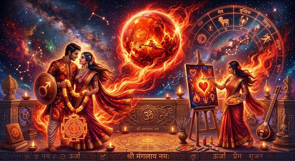 In Vedic astrology, Mars represents energy, passion, aggression, and action, while the 5th house (Putra Bhav) governs love, romance, children, creativity, and intelligence.