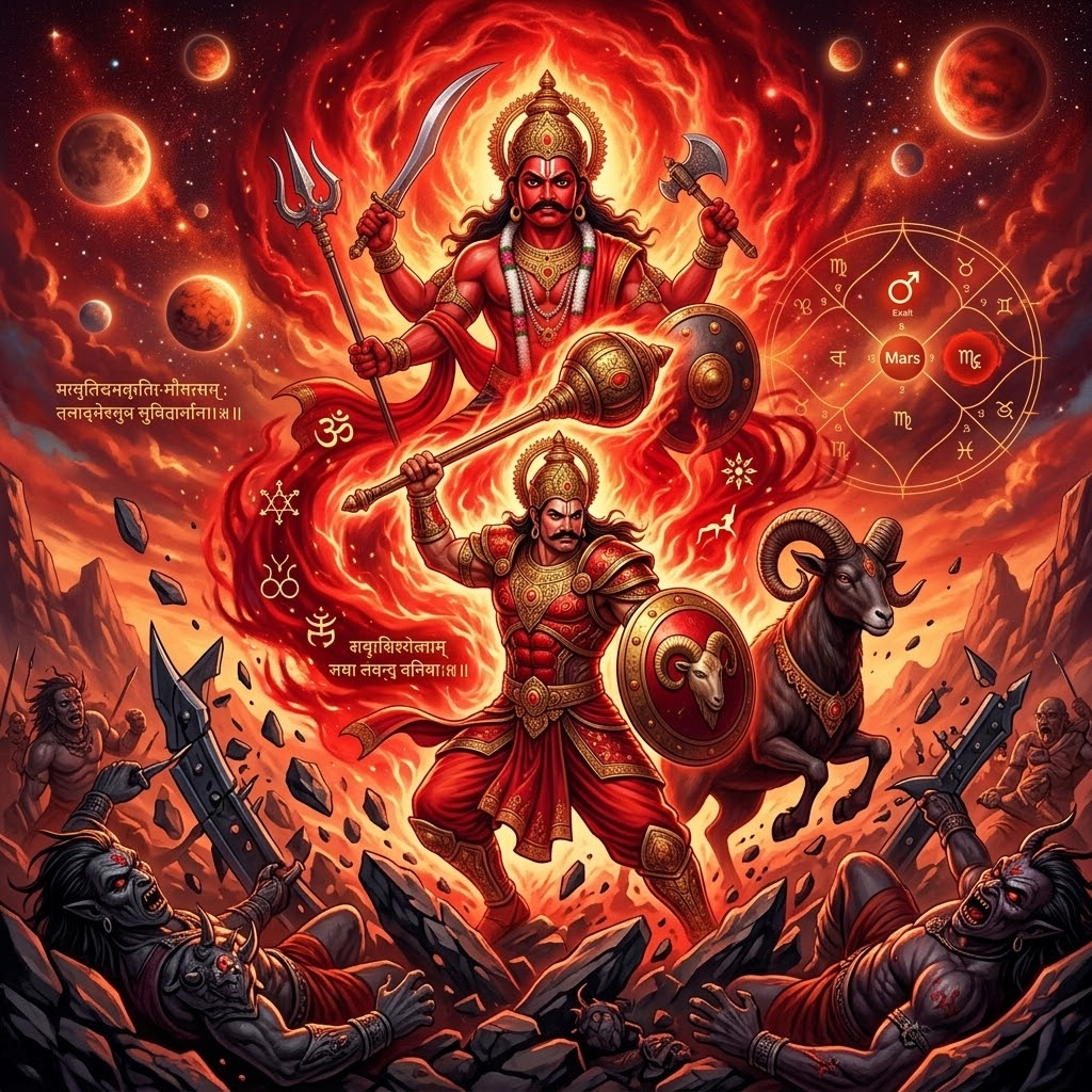 In Vedic astrology, Mars represents energy, action, courage, and aggression, while the 6th house (Shatru Bhav) governs enemies, health, debts, competition, and daily work challenges.