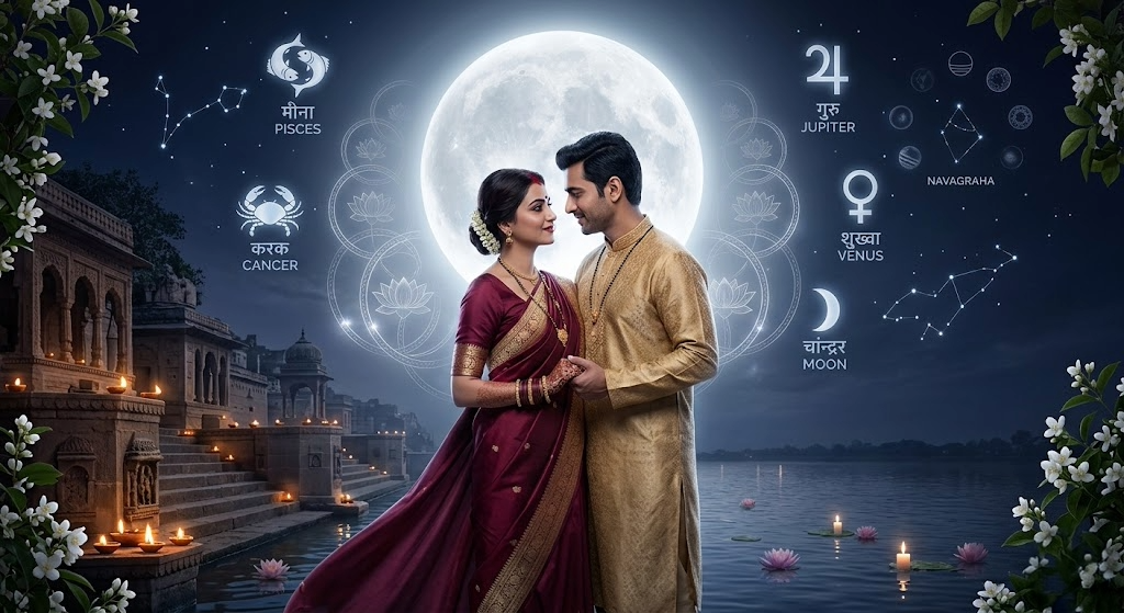 When the Moon is placed in the 7th house, it creates a strong influence on a person’s relationship behavior, emotional bonding, and marriage life.